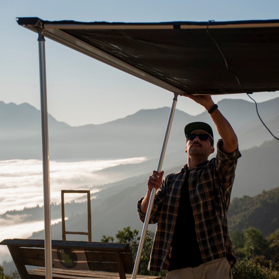 Además, viene con anclajes incluidos para al techo, cuerdas para asegurarla al suelo si es necesario y una funda gruesa de PVC, para que siempre estes preparado con tu toldo a mano.