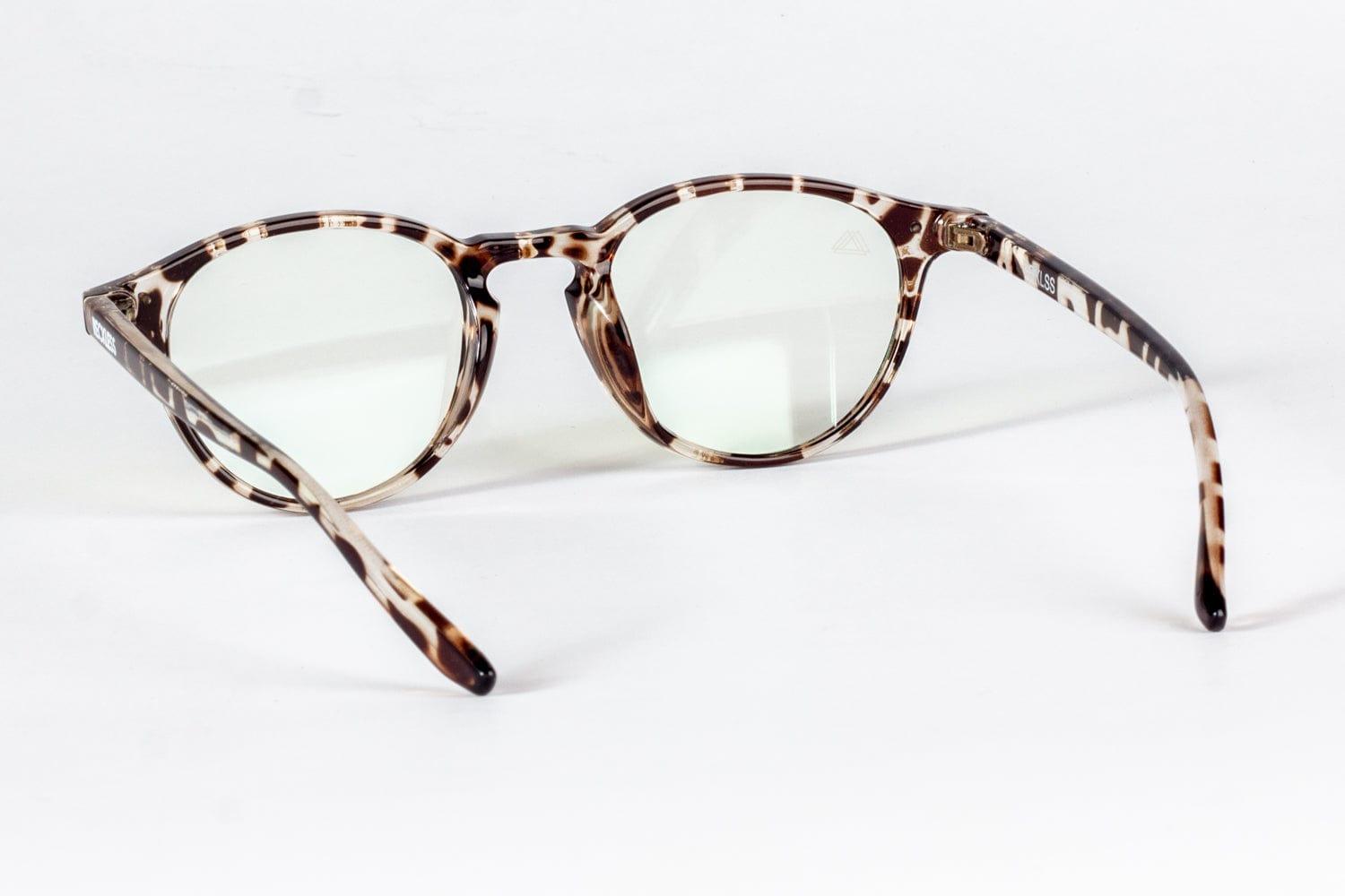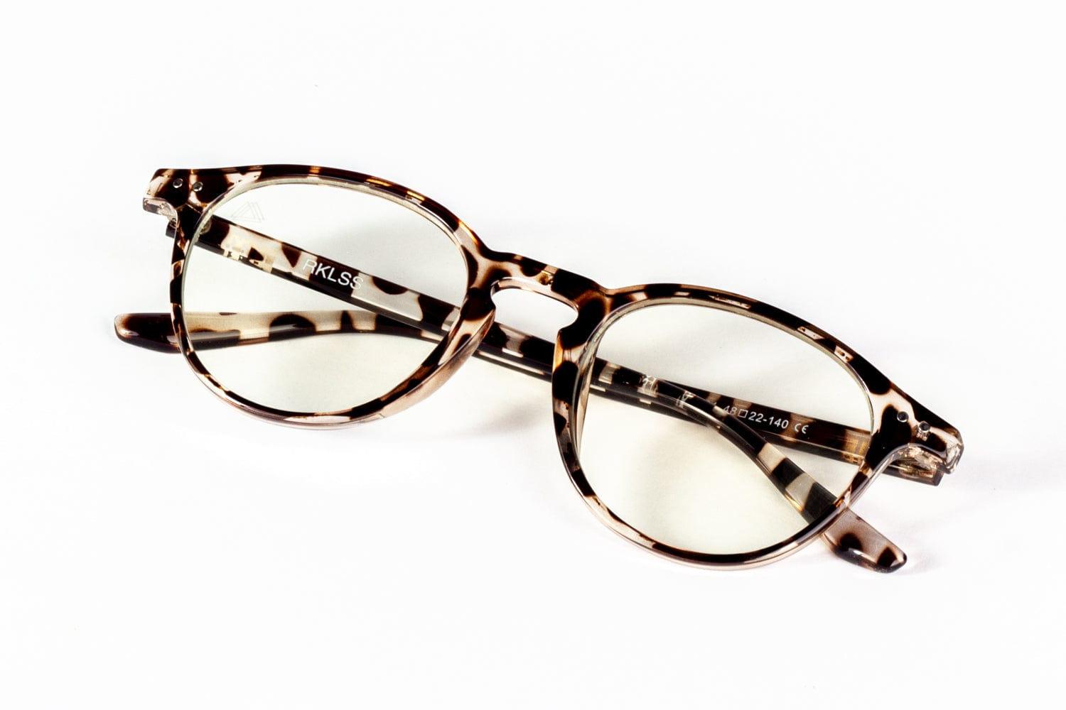 - Marco de color Tortoise claro y cristales transparentes con filtro anti luz azul o blue light y filtro 400 uv.