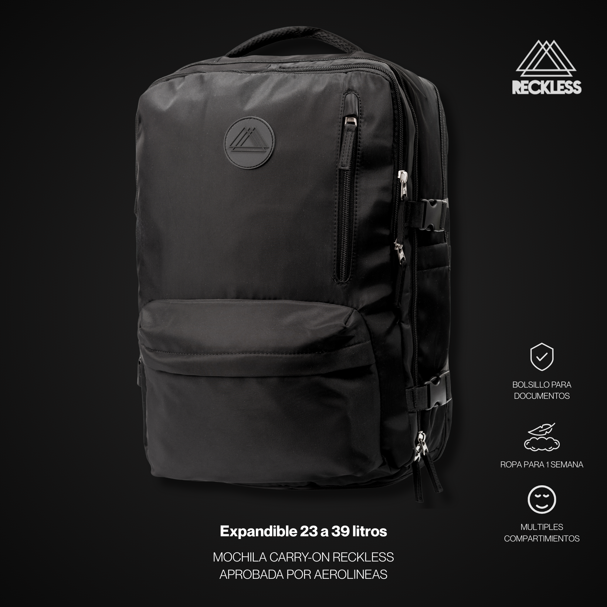¡Prepara tu próximo viaje con la Mochila Reckless Amuk, la mejor compañera de aventuras y de tu día a día! Con su diseño expandible y su peso ligero, podrás llevar todo lo que necesitas en tu día a día, si necesitas más espacio para tus viajes la puedes expandir, llevala en tus viajes en avión sin preocupaciones. ¡No te pierdas ningún momento gracias a tu Mochila Reckless Amuk!